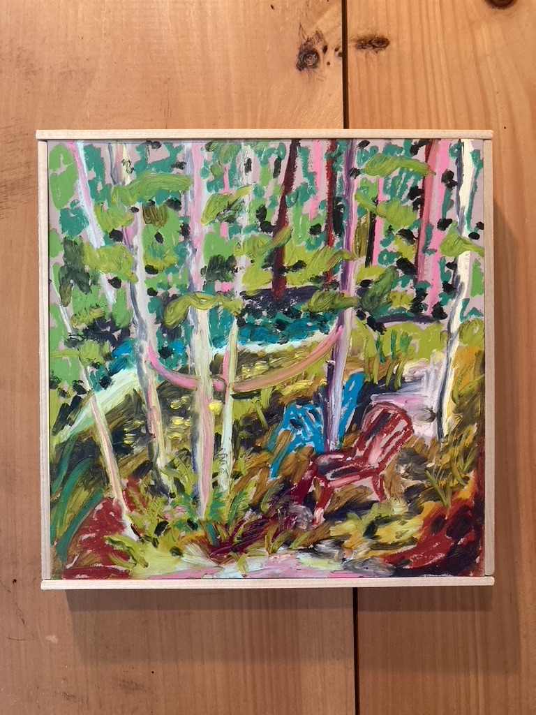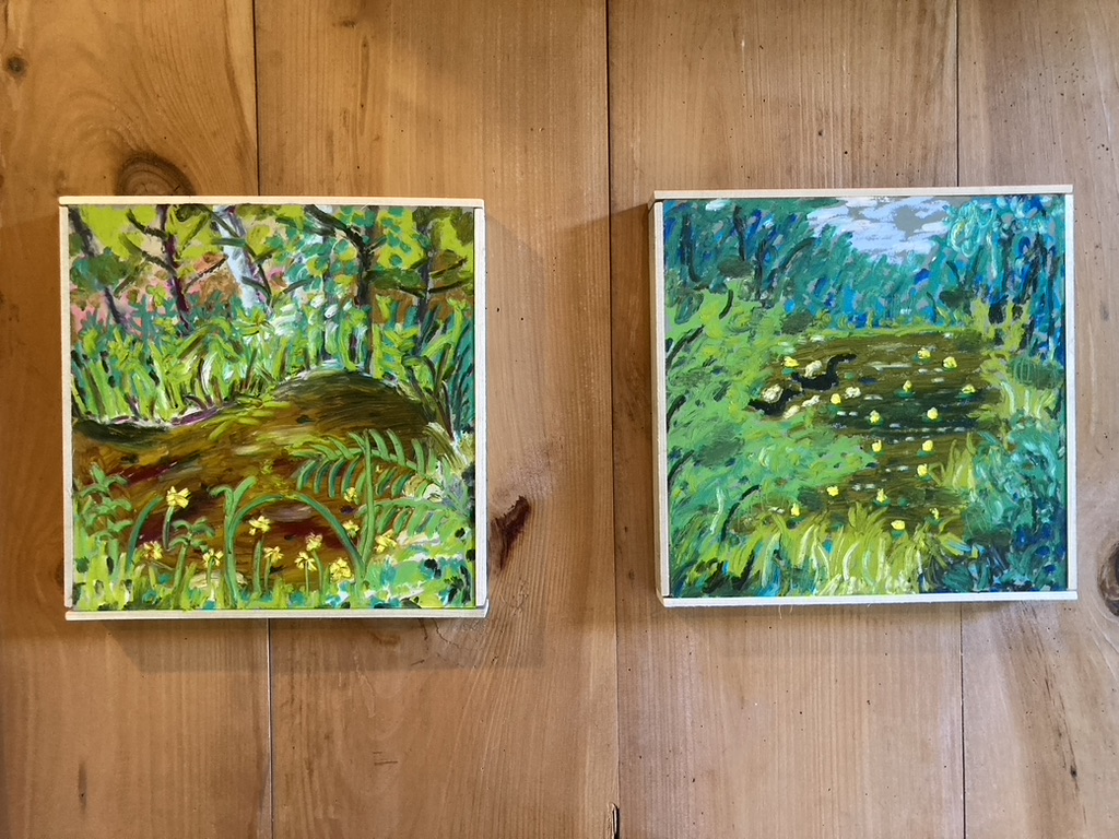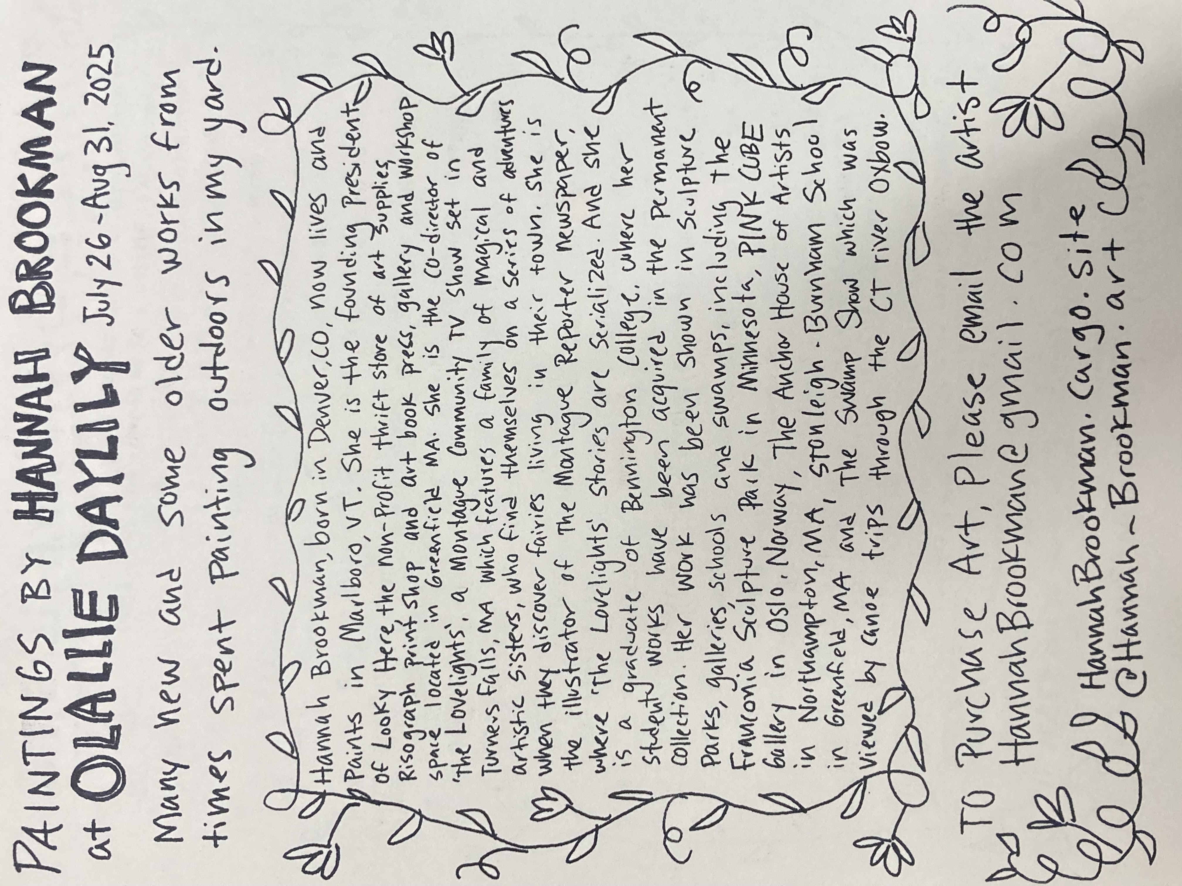 Paintings by Hannah Brookman are on view at Olallie Daylily Garden at 129 Augur Hole Rd, South Newfane VT on weekends July 26th- August 31st, 2025.