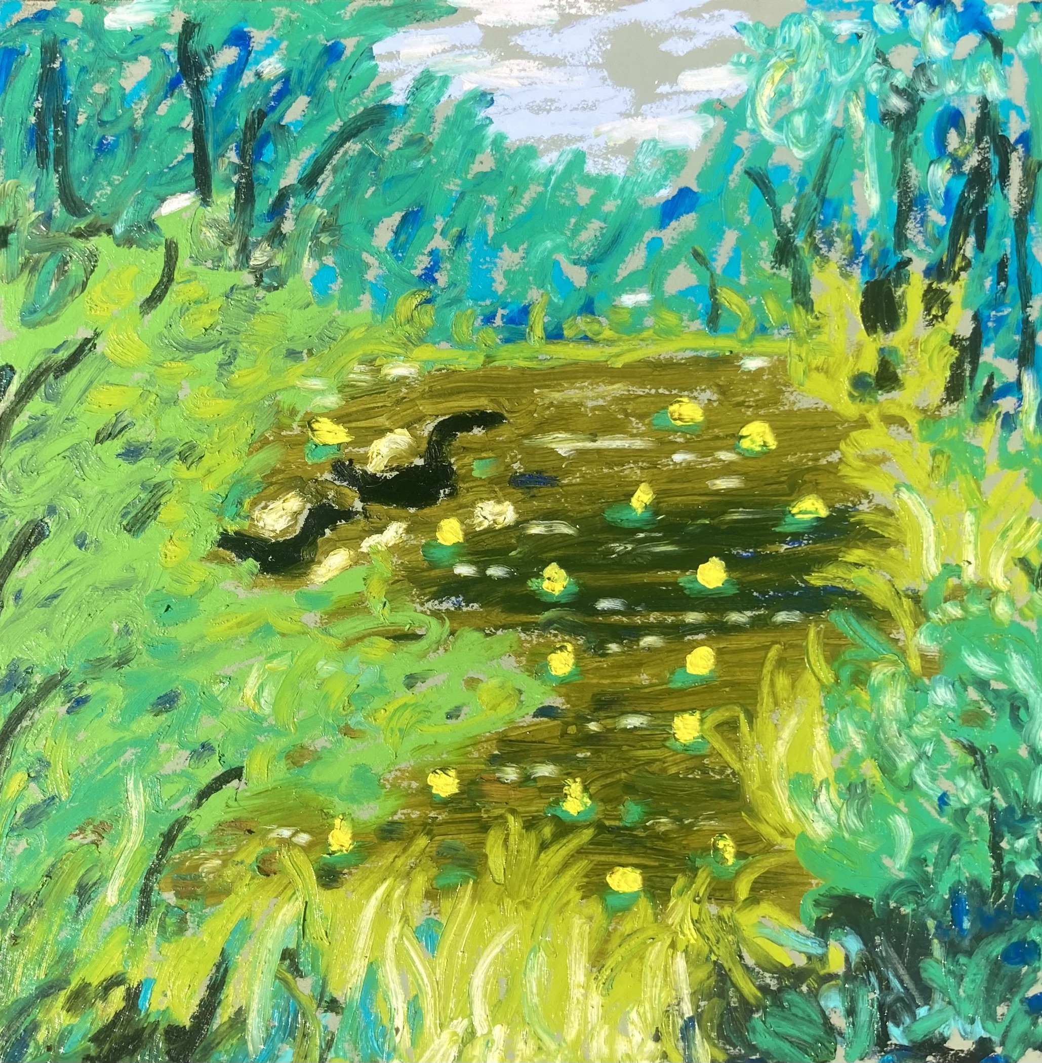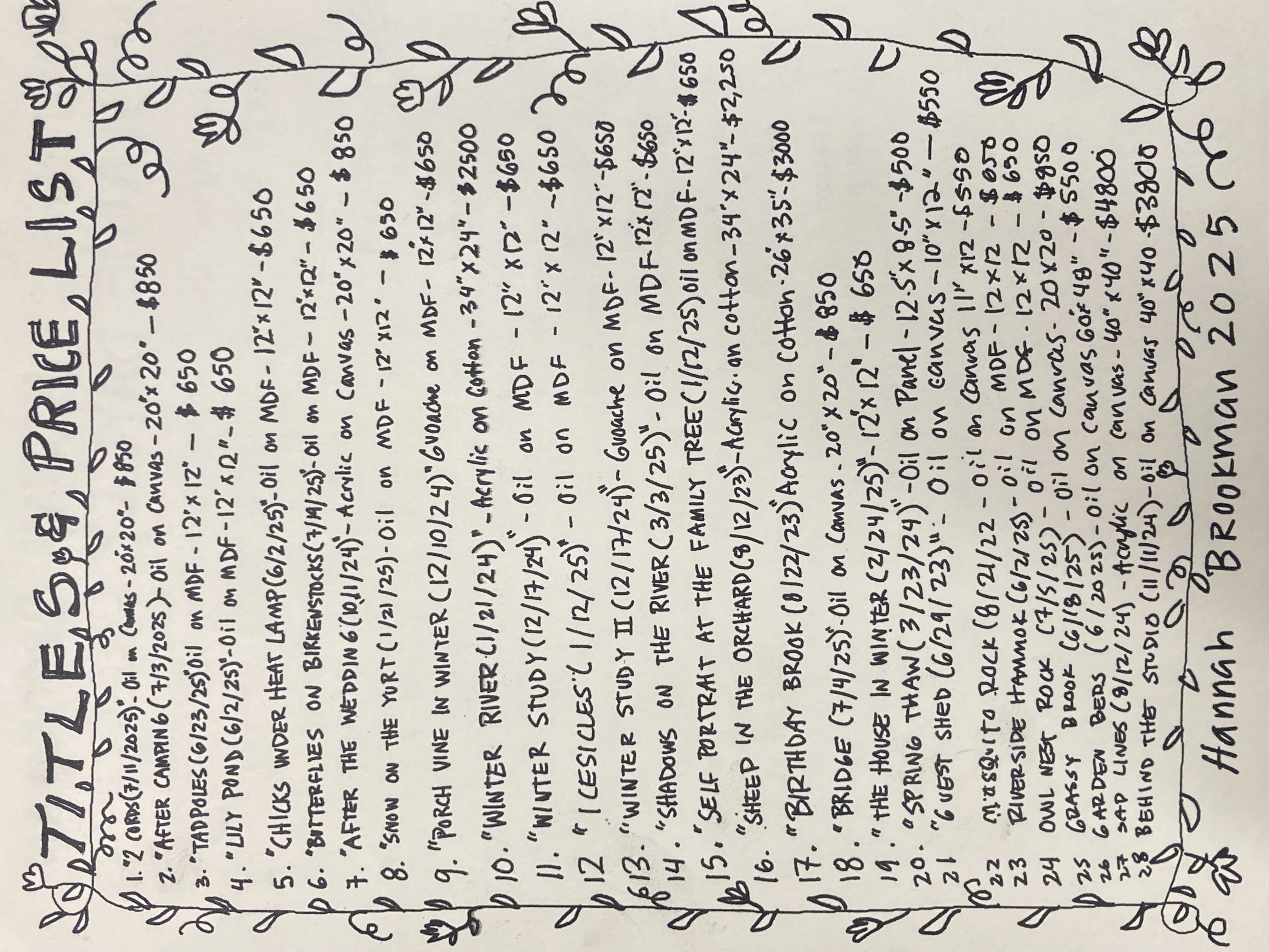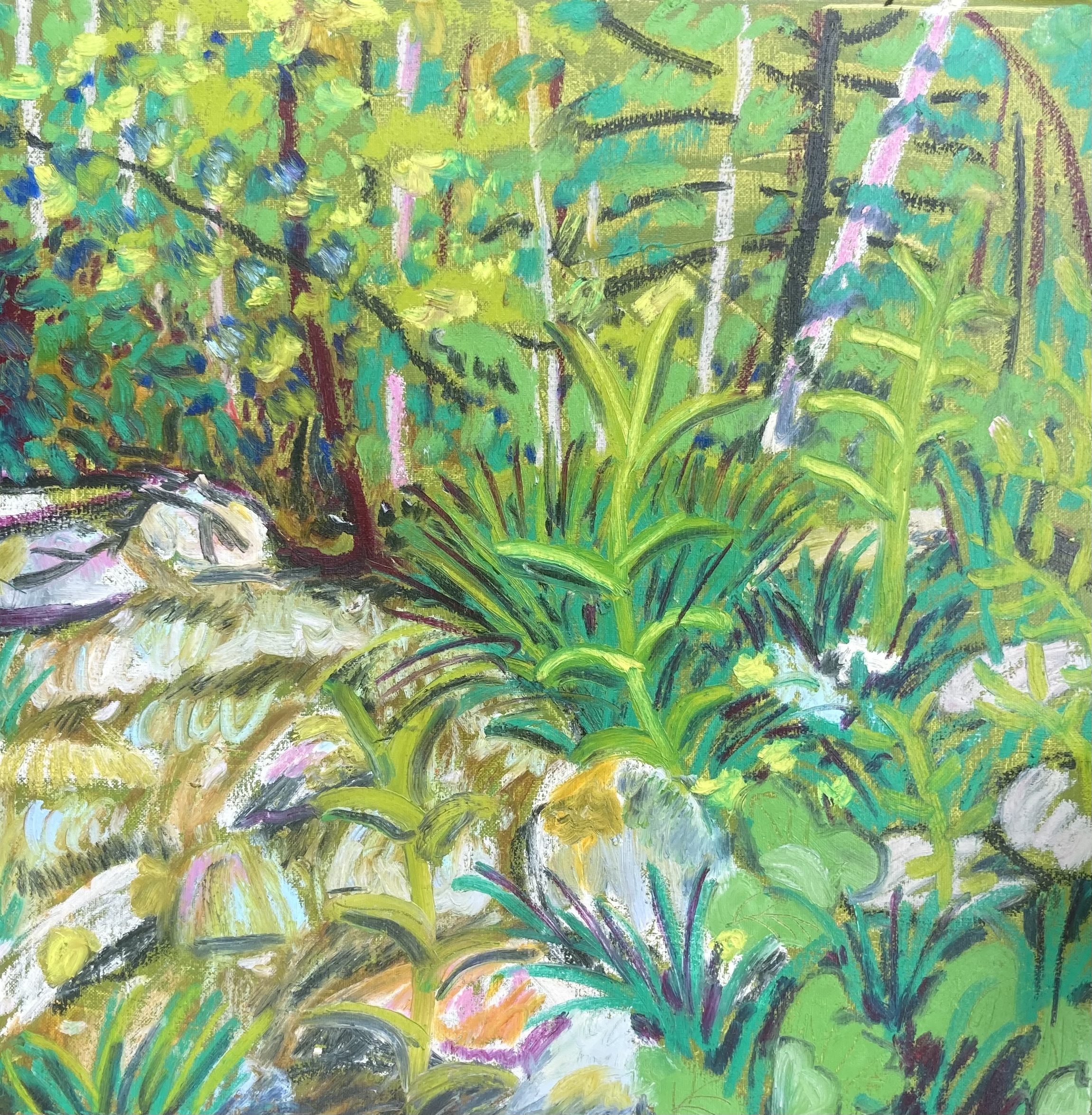 Paintings by Hannah Brookman are on view at Olallie Daylily Garden at 129 Augur Hole Rd, South Newfane VT on weekends July 26th- August 31st, 2025.